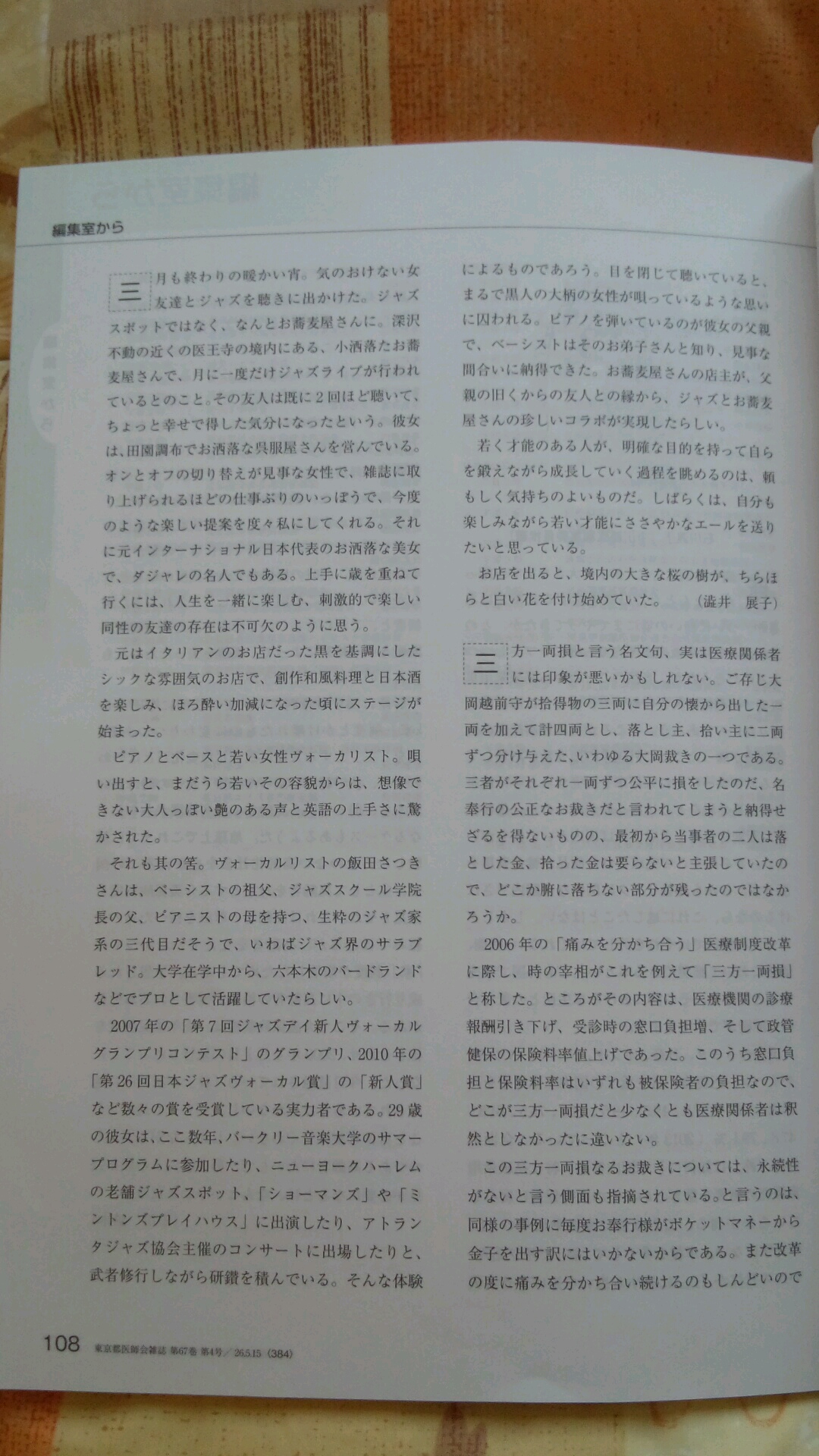 「出っぱなしのさっちゃん♪」は、JAZZ専門雑誌に留まらず、今度はなんと!!医療系雑誌に登場しちゃった( ̄▽ ̄)V