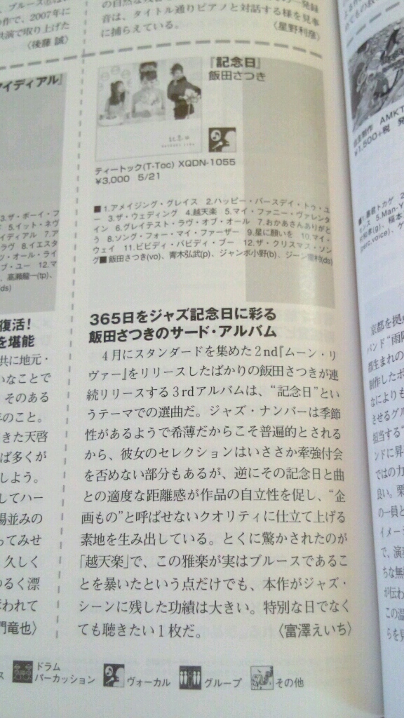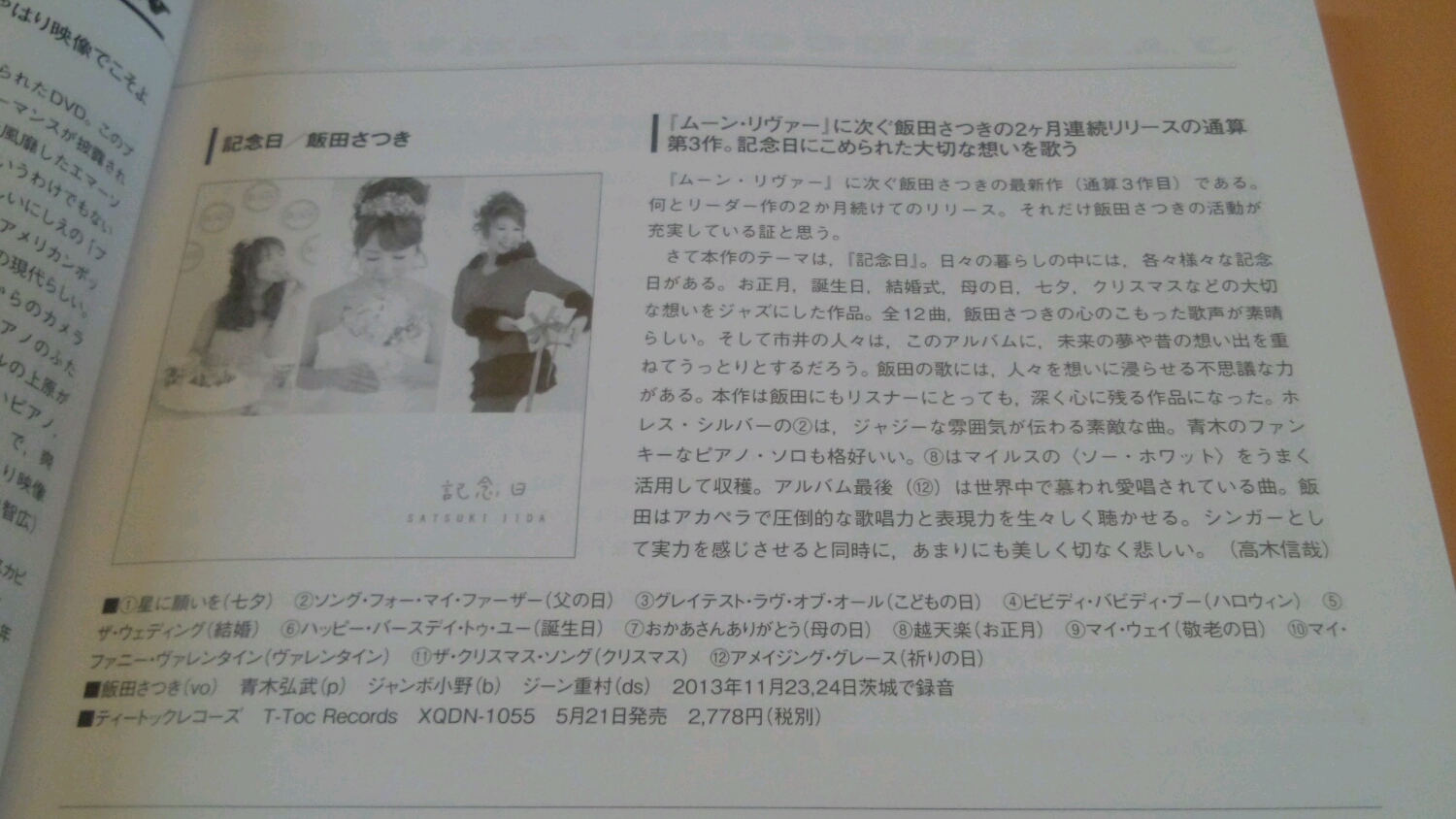 ・CDを再生すれば、ジャズにしっかり軸足を置きながら幅広くアプローチする飯田さつきの声が様々な記念日を演出してくれるだろう。〉