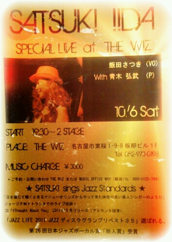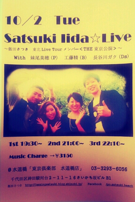 今月は、初出演のお店が2つ!一つは名古屋「THE WIZ」。もぅ一つは有名店 代々木「NARU」。オススメライブもあるし、10月も張りきっていきましょ~!