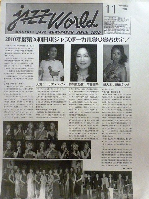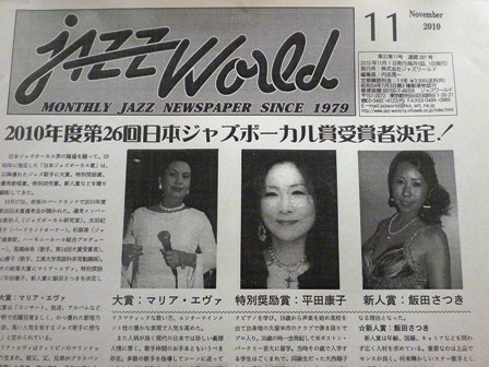 この度、2010年度第26回日本ジャズボーカル賞「新人賞」を受賞致しました。